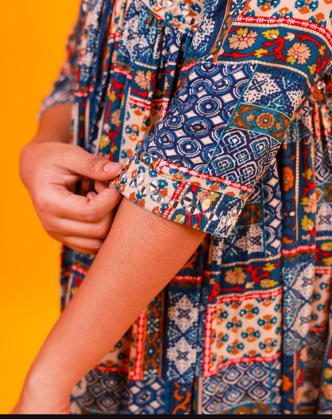 Embrace your free spirit with this stunning, flowy maxi dress. Featuring a vibrant patchwork or ethnic print design, this dress captures the essence of bohemian chic. The flattering A-line/flared silhouette drapes beautifully, offering comfort and style for any occasion.