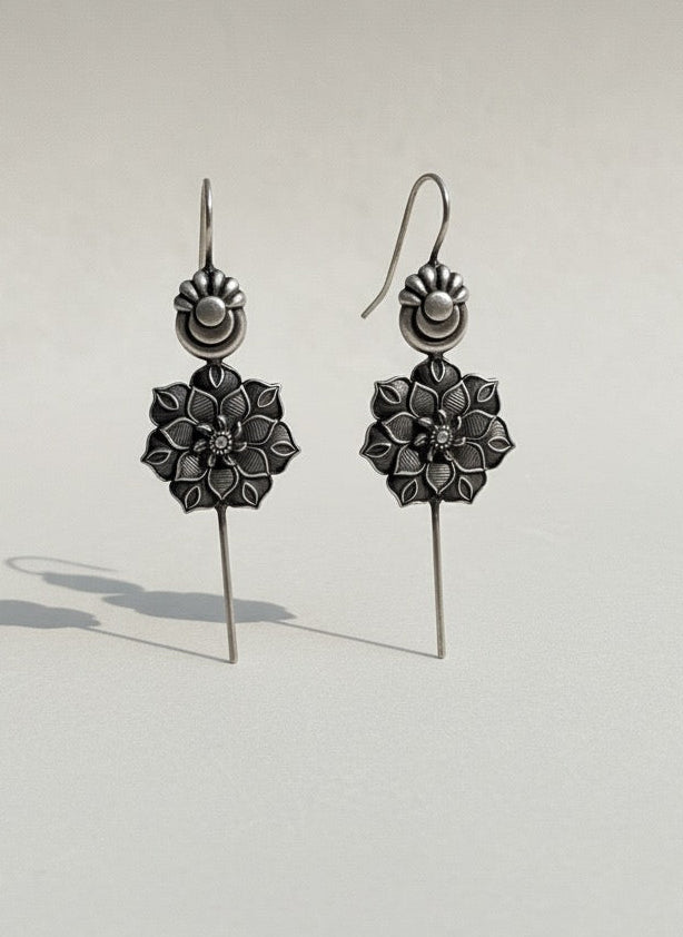Oxidized Silver Floral Choker Necklace Set with Earrings