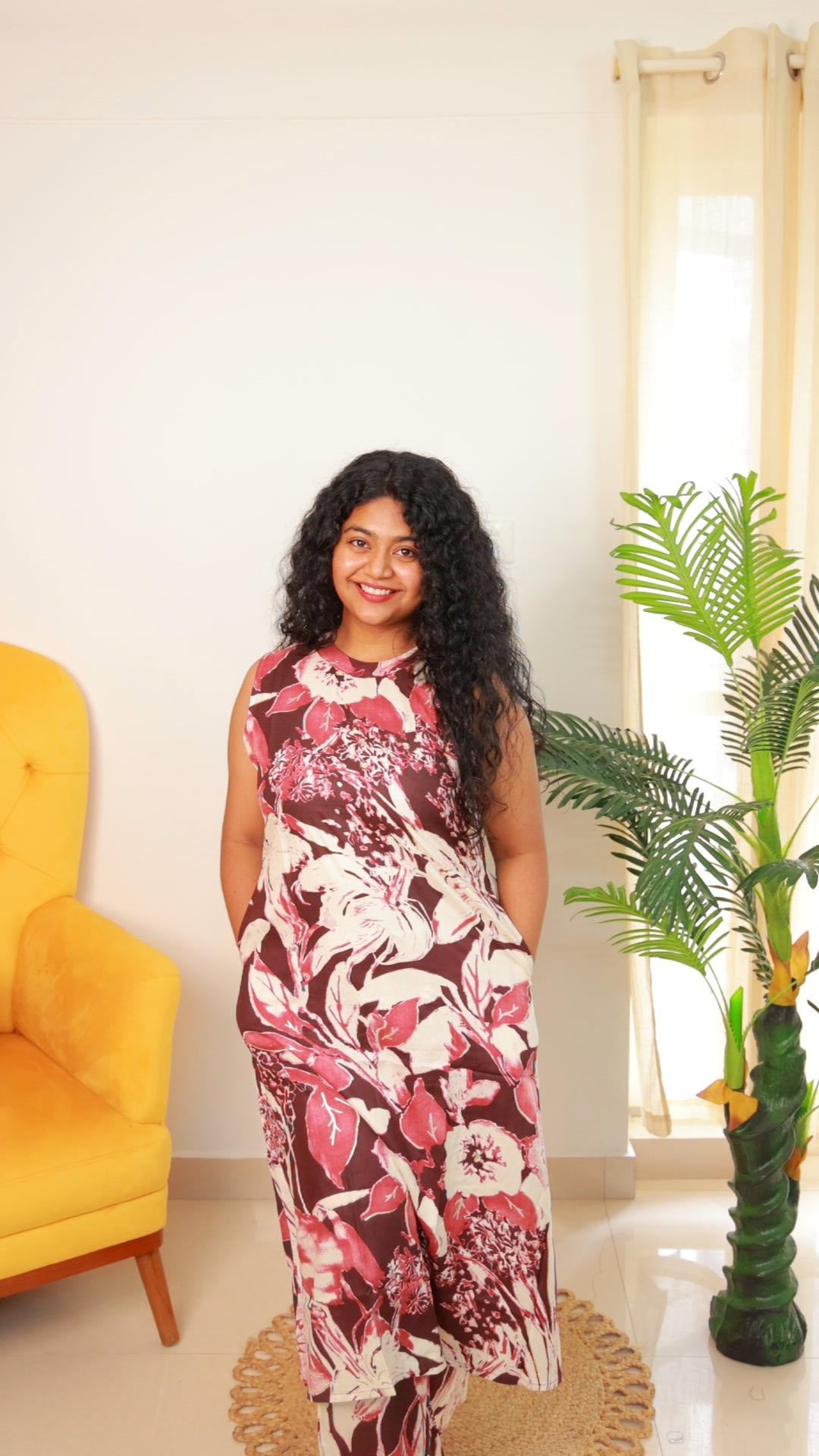 Step into effortless elegance with this floral dress, designed to make a statement in comfort and style. Featuring a striking blend of maroon, burgundy, and white tones, the bold floral print adds a vibrant touch to your everyday wardrobe.