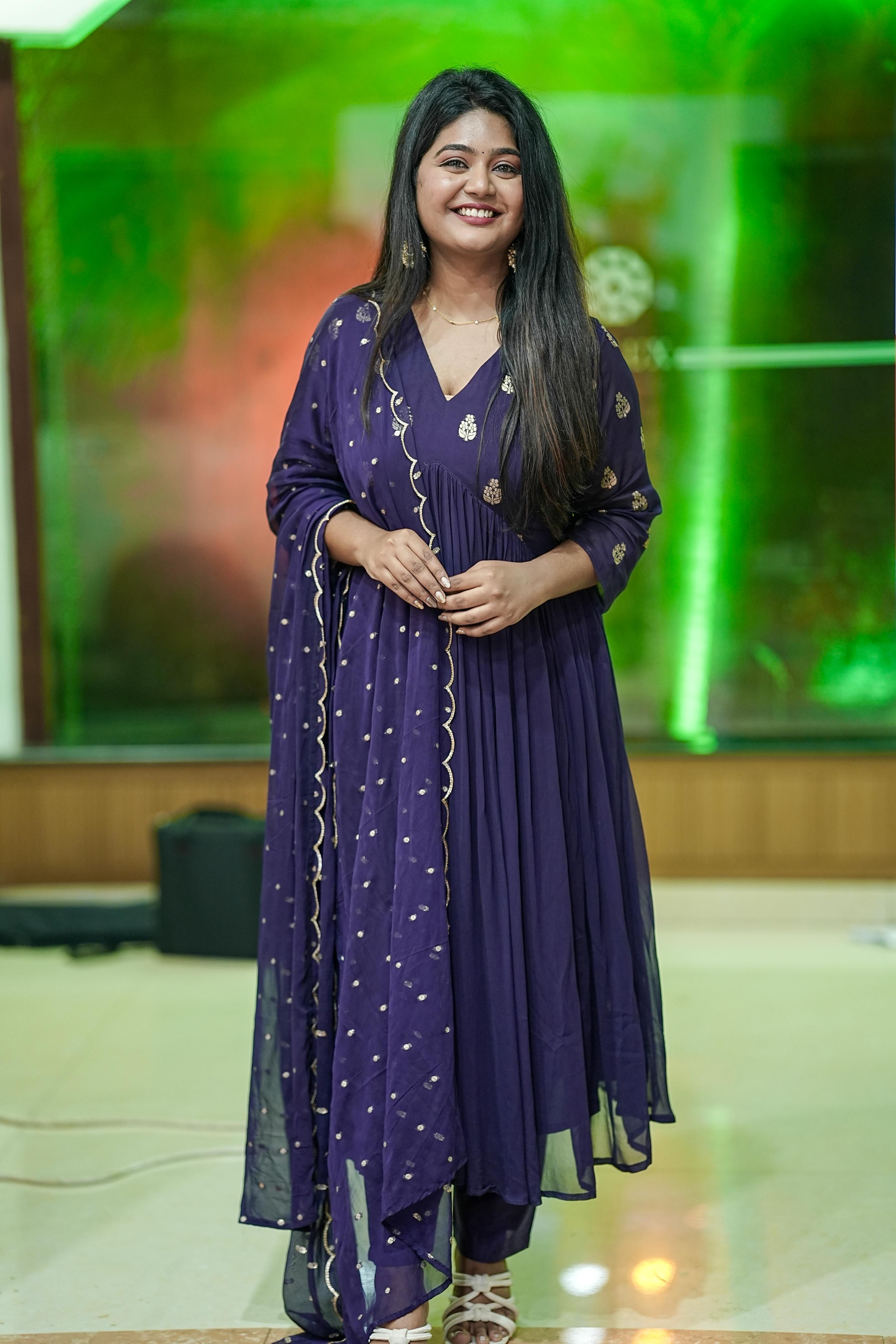 Step into elegance with this stunning Dark Violet Anarkali suit set, perfect for festive occasions, family gatherings, or weddings. The ensemble combines traditional charm with contemporary grace.