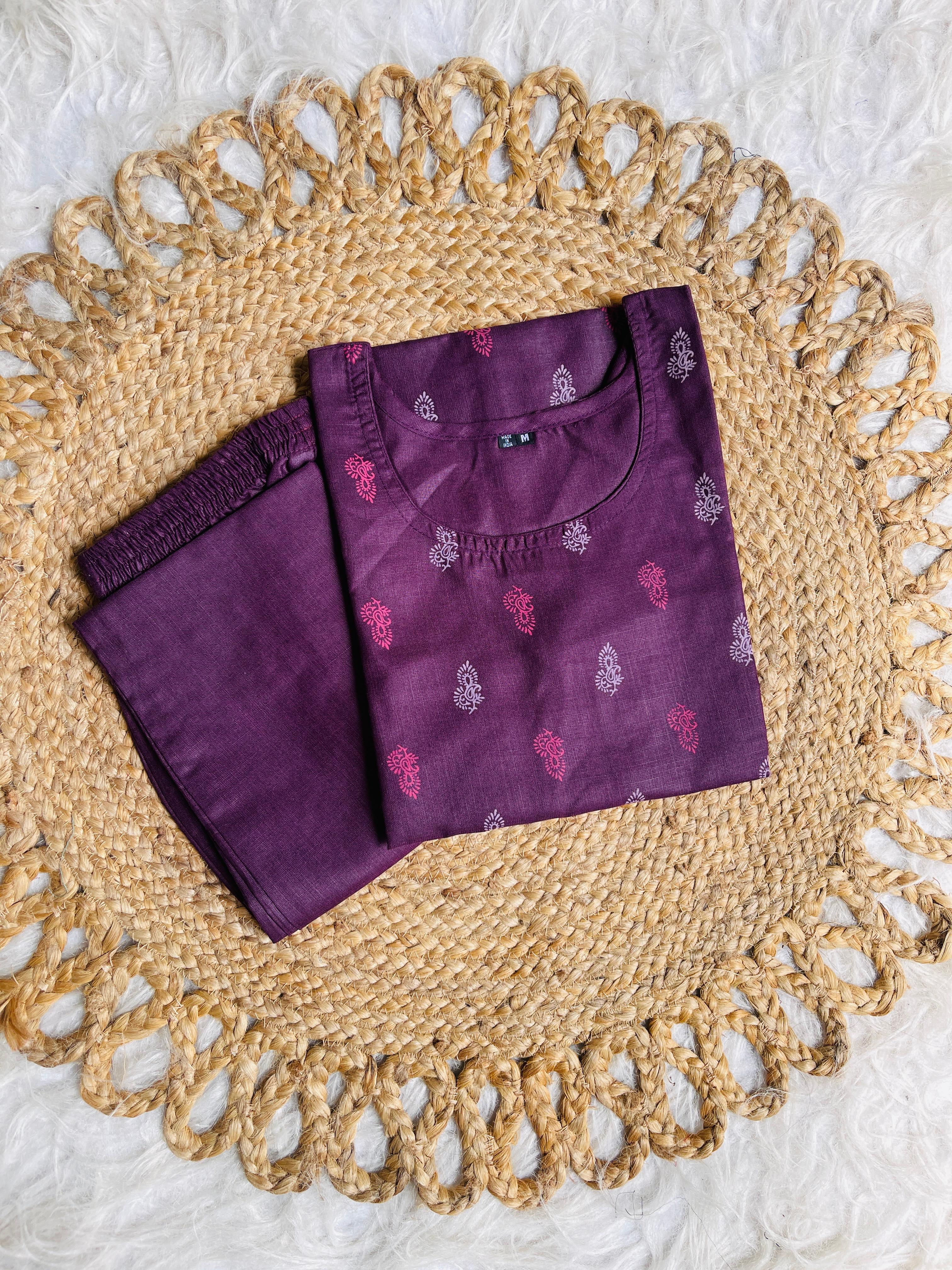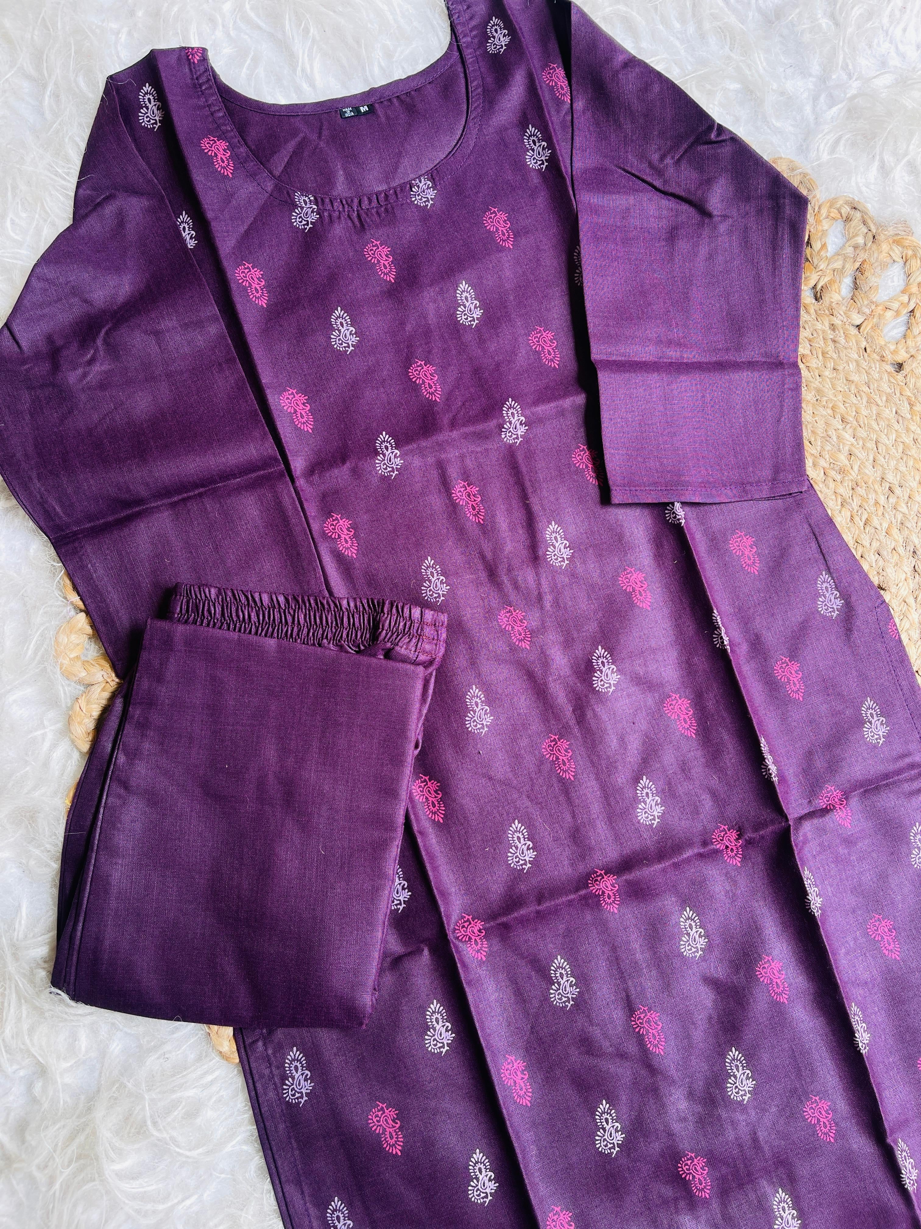 This elegant two-piece Plum Purple Kurta Set offers a blend of traditional design and contemporary style, perfect for everyday wear, festive occasions, or casual gatherings.