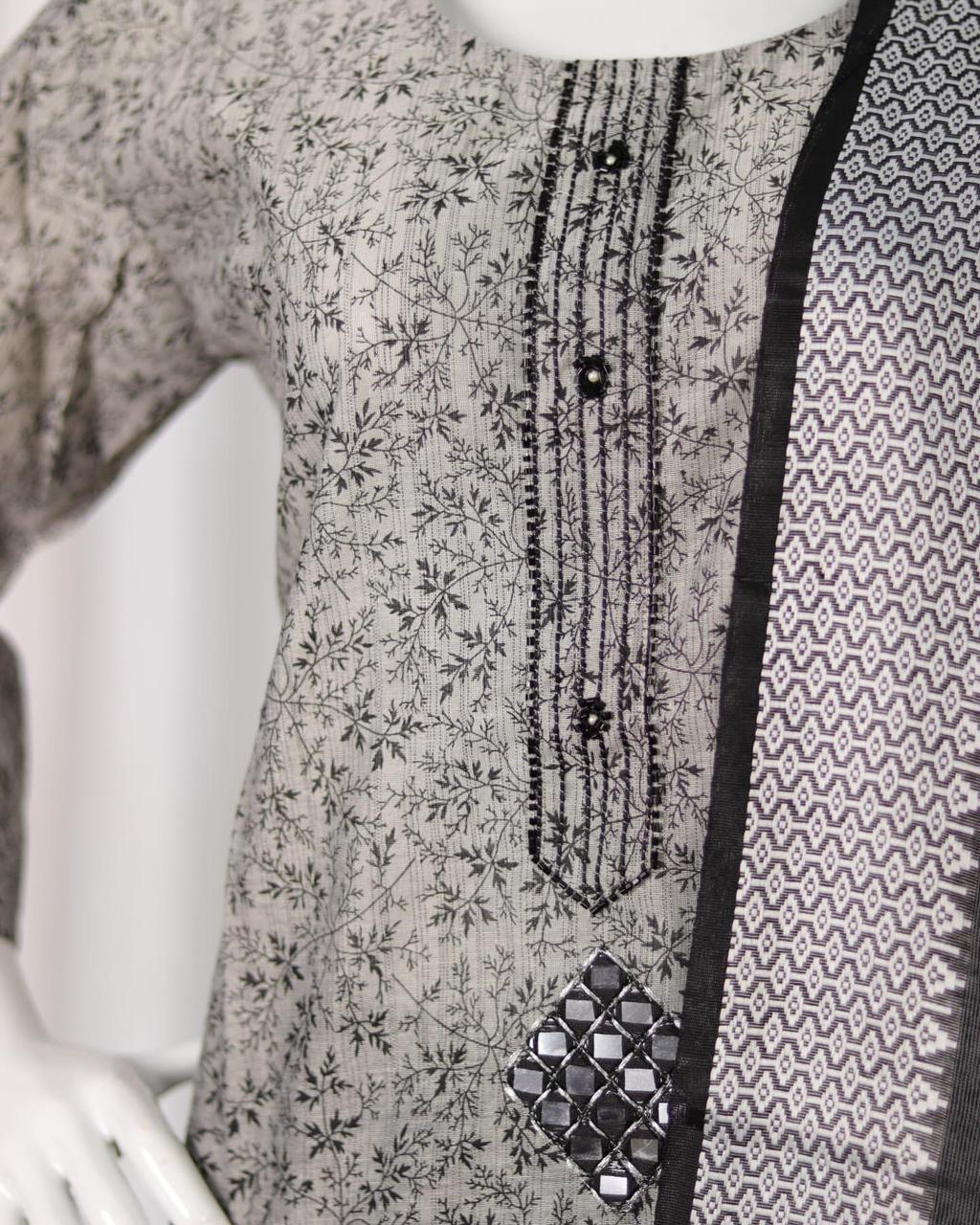 Elevate your ethnic collection with this graceful Grey printed 3-piece set, blending modern finesse with traditional charm. Perfect for festive occasions, family gatherings, or semi-formal outings.