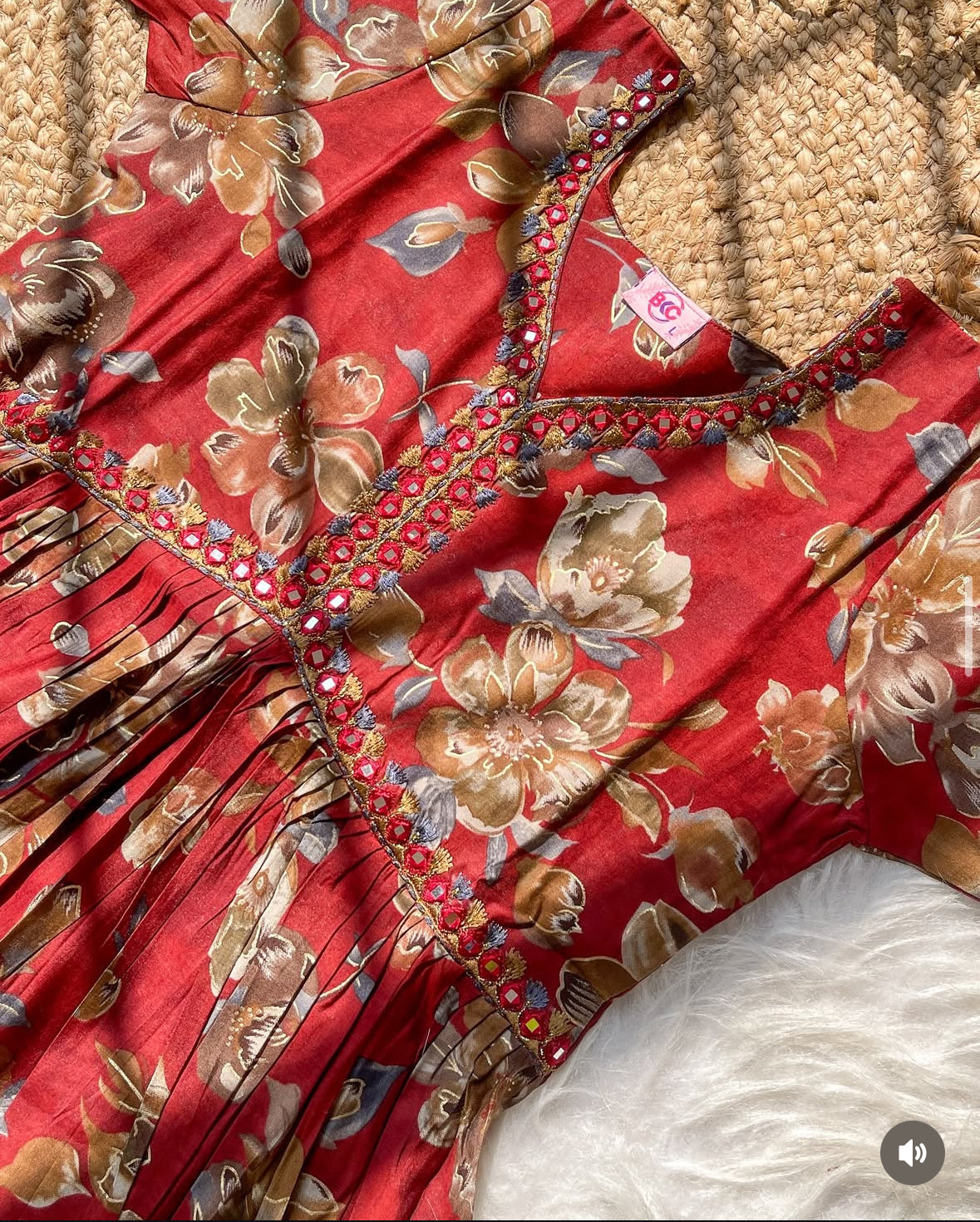 V NECK RED THREAD MIRROR WORK TOP (SU 45)