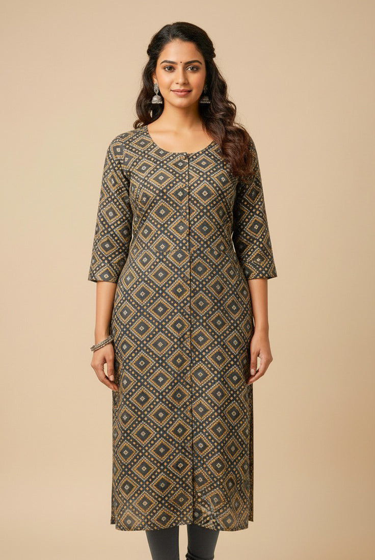 Green & Golden Embroidered Straight Kurti with Neck Detailing (SU 24)