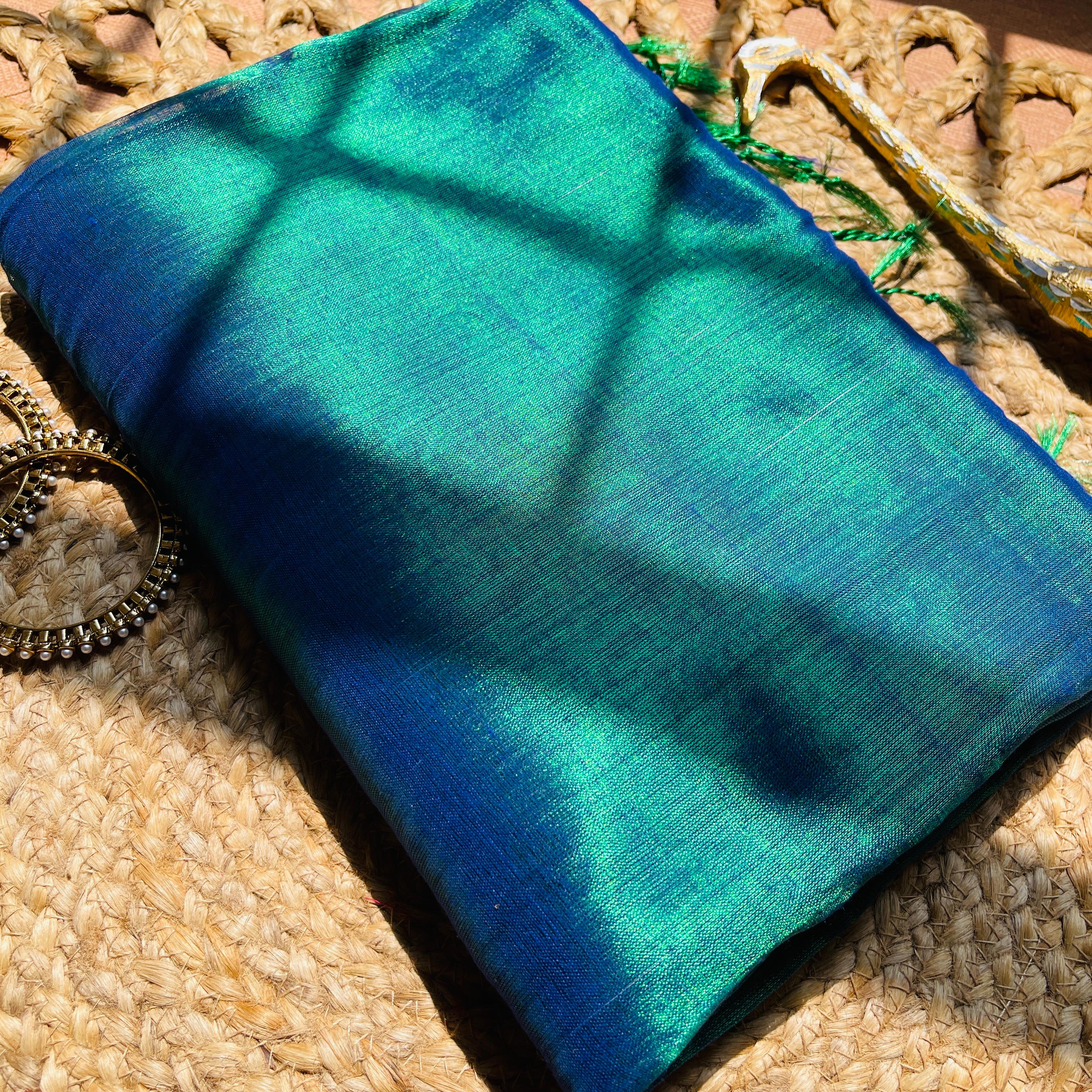 MAYURI PEACOCK GREEN PLAIN GLAZING TISSUE SAREE (SU 713)