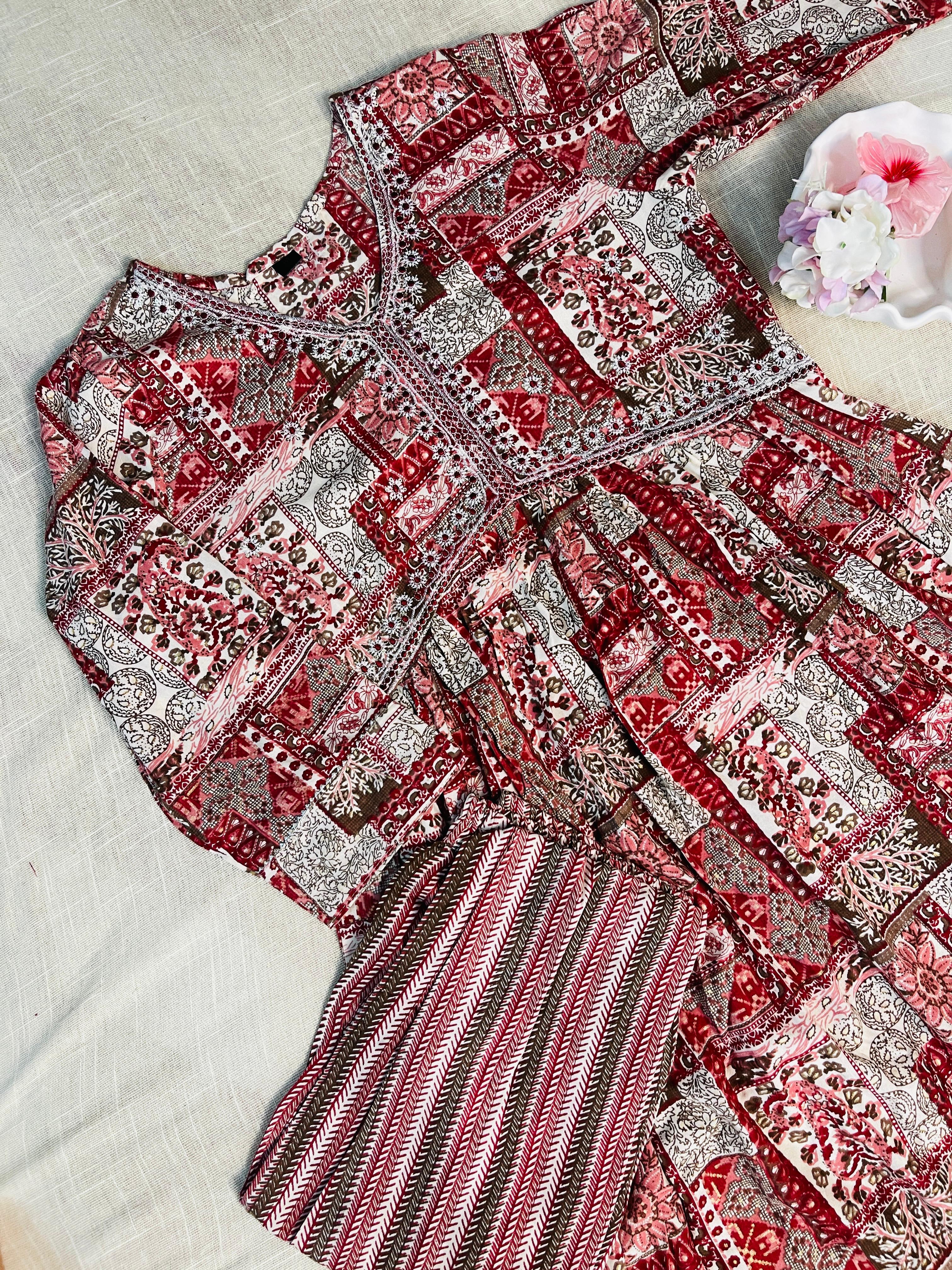 A graceful festive-wear ensemble in a vibrant red hue, designed in the popular Alia-cut silhouette that flares beautifully for a flowy, flattering look.