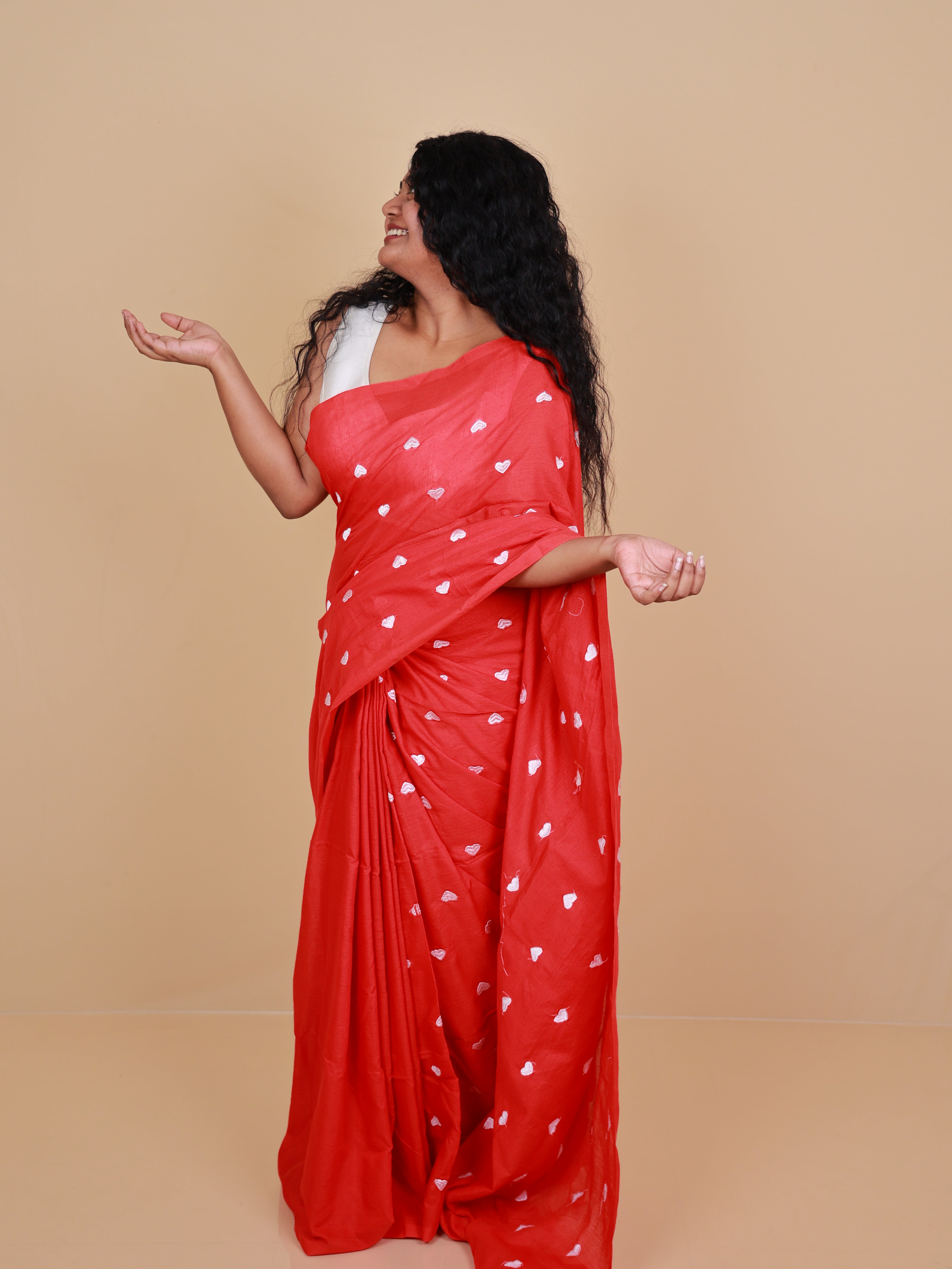 ANURAGA RED ROMANCE KHADI COTTON SAREE WITH TASSELS (SU 709)