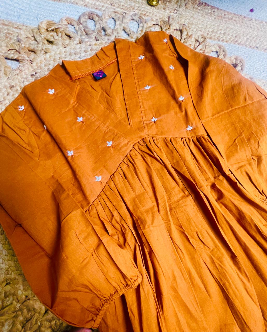RUST BLOOM WITH WHITE EMBROIDERY SHORT TOP (SU 676)