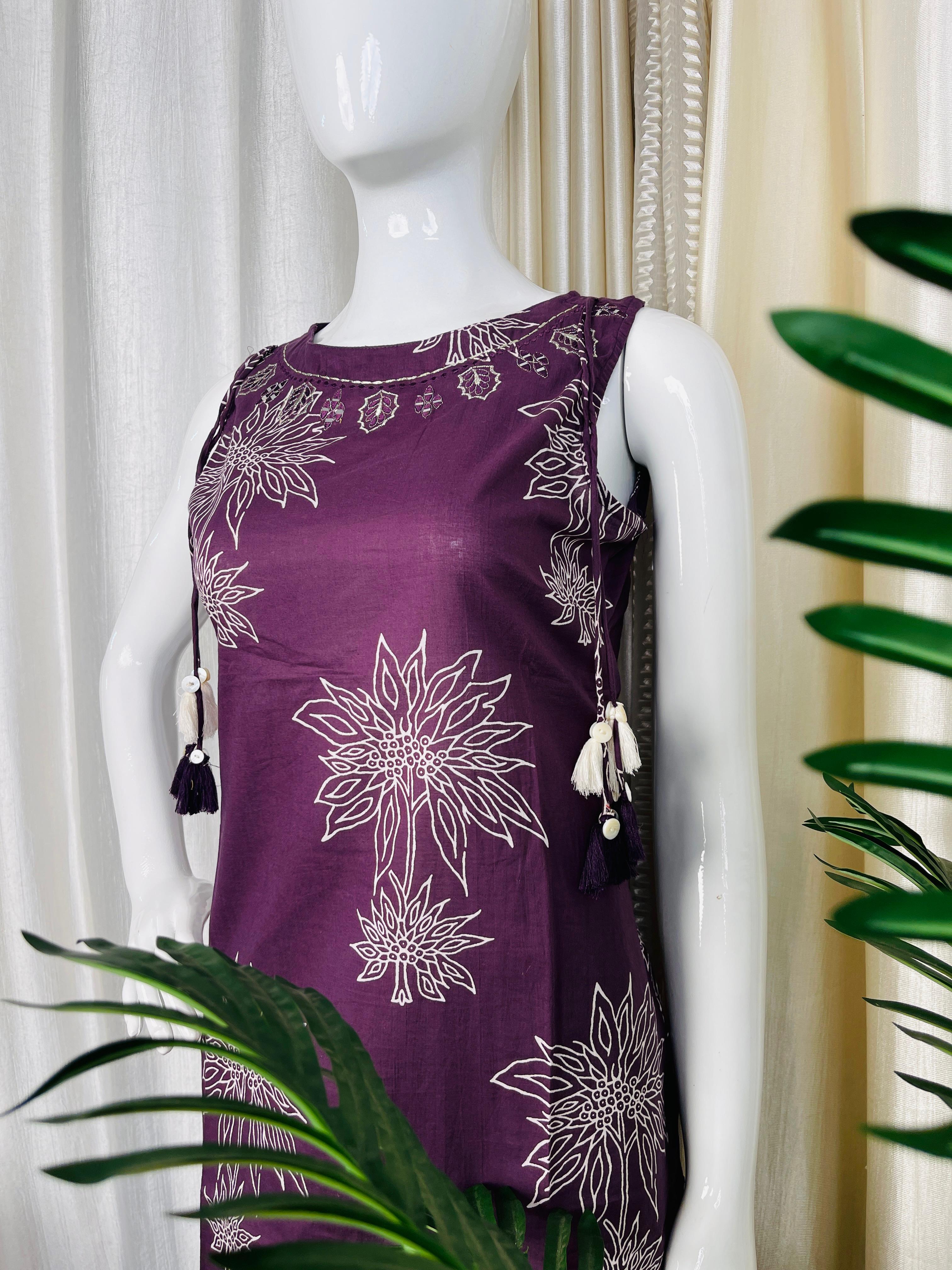 Purple Grey Floral Printed Anarkali Suit Set (SU 32)